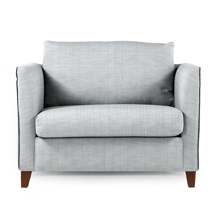 Кресло состоит из двух больших съемных подушек, одна из которых служит сидением, а вторая играет роль удобной и мягкой спинки. Устойчивости креслу придают четыре деревянные ножки, которые выполнены из прочного материала – массива дуба. Возможно изготовление в любой цветовой гамме, а также в экокоже. Кресло BARI серо-голубое.