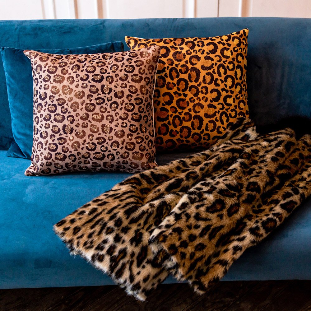Уверенная походка, томный взгляд, твердый характер: настоящий хищник! Интерьер в леопардовой расцветке словно крадется по городским джунглям. В 2019 году животный принт снова в тренде. Поэтому пора отправляться на охоту за покупками, чтобы в этом сезоне создать себе самый ультрамодный интерьер! Орнамент на подушках нанесен краской, имитирующей золото. Игра различных оттенков желтого и бежевого цветов создает иллюзию блестящего покрытия.
